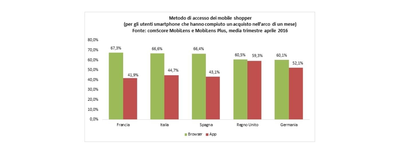 Nei mercati EU5, infatti, oltre il 60% dei mobile shopper che ha compiuto acquisti online ha scelto di farlo visitando i relativi siti da browser mobile.