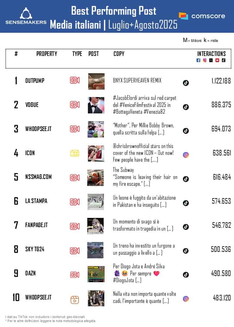 Top Media Italiani per Best Performing Post a Luglio e Agosto
