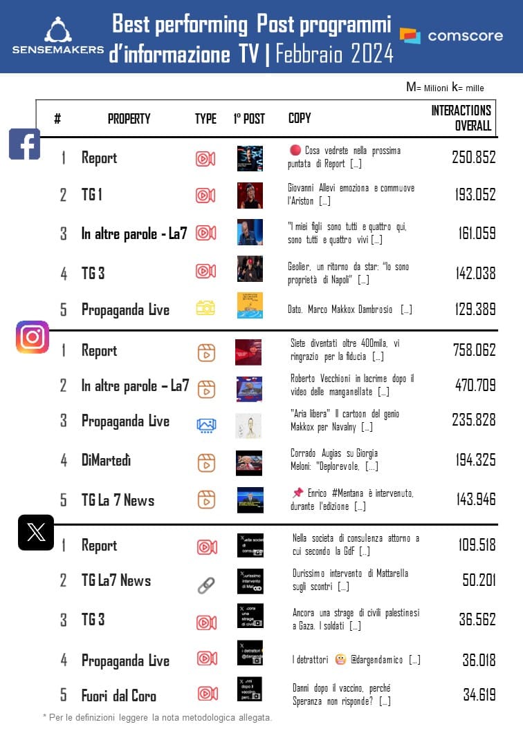 Best Performing post Programmi TV d’Informazione per piattaforme social