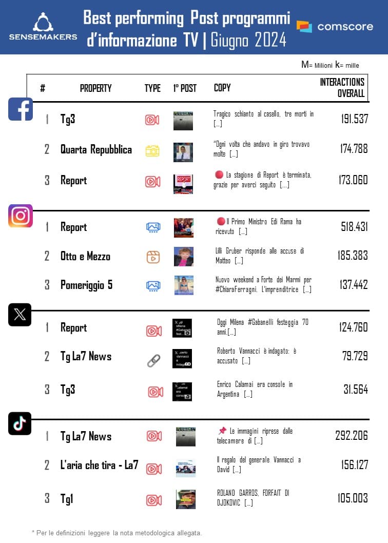 Top Programmi TV d’Informazione per interazioni sui social a giugno