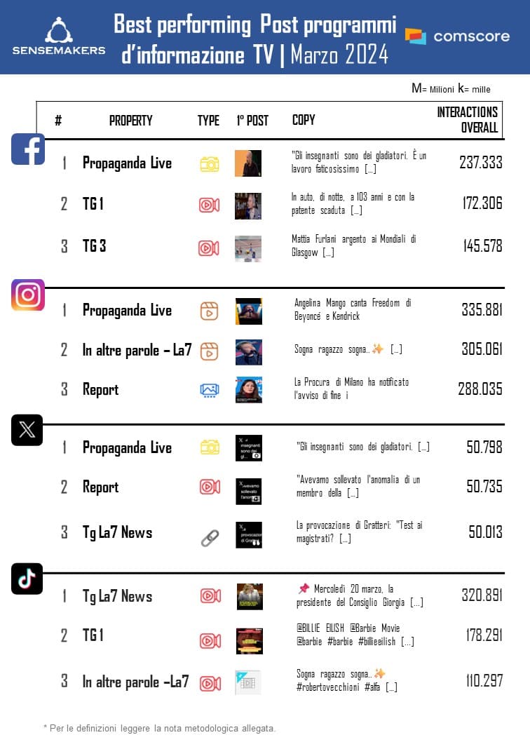 Best Performing post Programmi TV d’Informazione per piattaforme social
