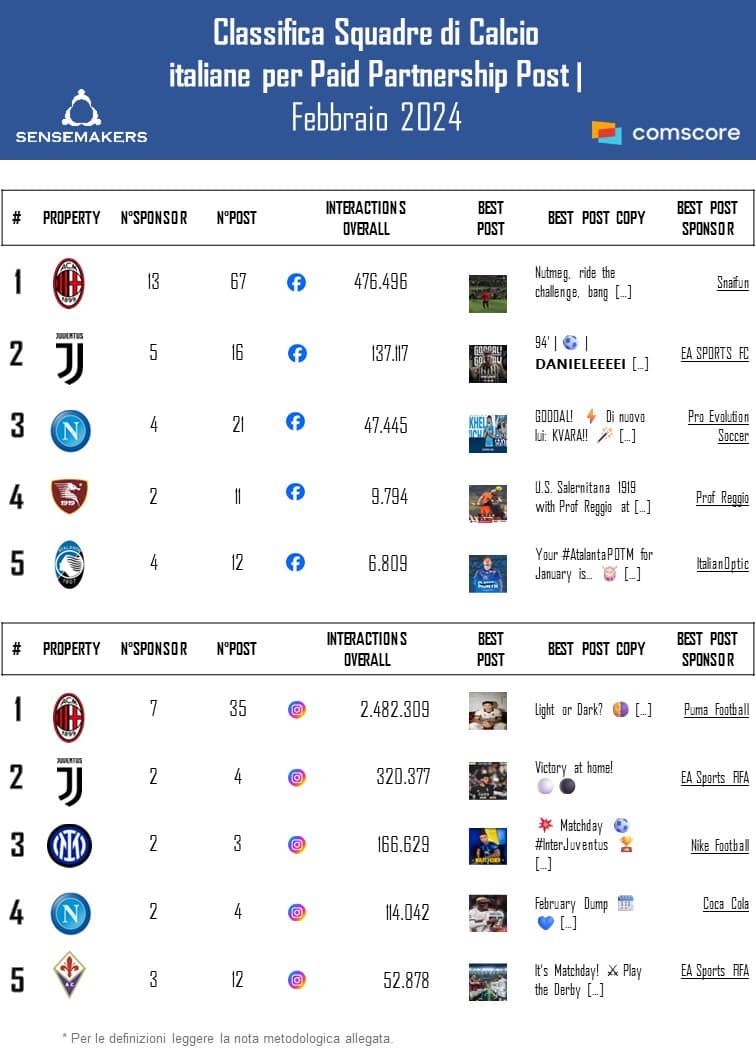 Top Squadre di Calcio per Paid Partnership Post a febbraio